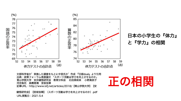 日本でも小学生の「体力」と「学力」は正の相関関係がある事がわかっています。